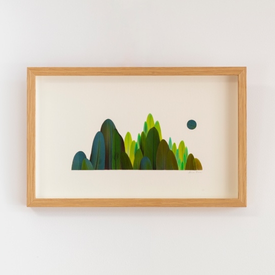 « Paysage », 2025, mosaïque de plumes, 60x36cm.