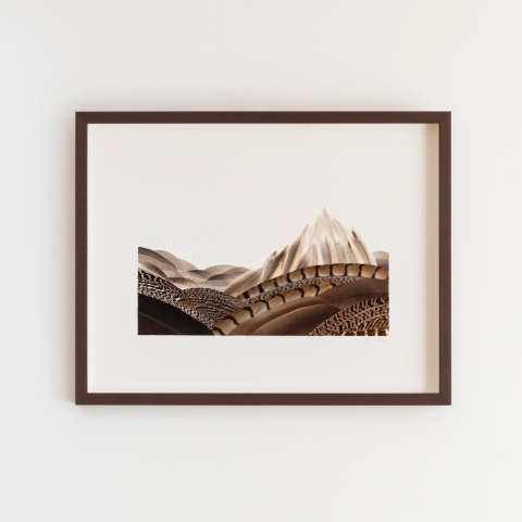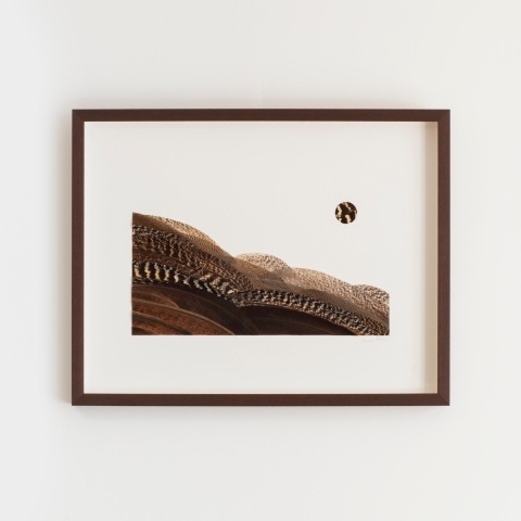 « Paysage », 2025, mosaïque de plumes, 46x36cm.